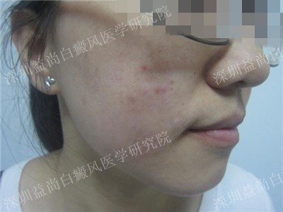 - 23岁女性面部白癜风 发展期
