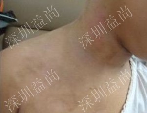 第三阶段:家长带患者前来复诊,通过伍德灯的检测发现,白斑范围有所缩小,较明显的地方的白斑已消失,肤色转红,手术效果较为明显。在后来的巩固治疗中,可见更加明显的效果。