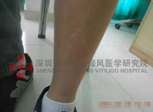 - 12岁男孩腿部局限型白癜风一年