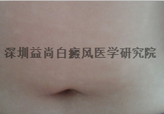 来院复诊时,患者腹部白斑已完全被新长出的黑色素覆盖,治疗效果显著,处在良好的恢复阶段。