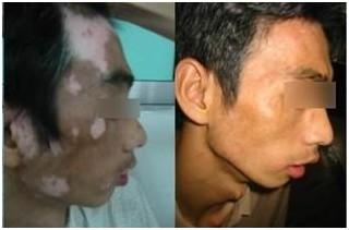 二、早期诊断:在白癜风初发期,治疗是比较容易的。初发1-2个月的白斑,往往在治疗半个月至两个月内,可以完全消失。初发的白斑,皮损内尚存有未完全破坏的黑素细胞,我们称之为“不完全性白斑”,此时及早治疗,可望于白斑皮肤基底层的黑素细胞修复、分裂增殖,分泌黑素,达到最佳的治疗效果。同时,初发白斑,面积较小,周围正常皮肤的黑素细胞可向白斑区移行,亦有助于白斑迅速消失,缩短疗程。