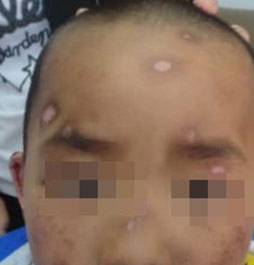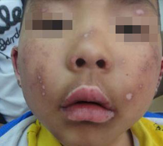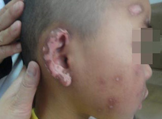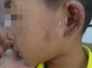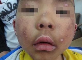 7岁军军出生在深圳一个平凡家庭里,今年上小学一年级。3年前,年仅4岁的军军不幸患上了白癜风,脸上很多白点白斑,小伙伴取笑他,叫他“斑点狗”。为此,军军自尊心严重受到伤害,哭闹不肯上学,整天闷闷不乐,小小的年纪,因为这可恶的白癜风而失去了笑容。令母亲最心痛的是孩子越来越不爱说话,连一声妈妈都几乎没喊过...母亲看在眼里,疼在心里,带着军军到处求医,发誓一定要将孩子的白癜风治好,给孩子一个健康快乐的童年。
