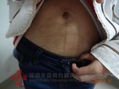 2015年1月18日,初诊时,患者腹部白斑明显,边缘模糊,处于进展期