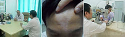 ▲病 史:曾在某综合医院治疗过,使用过外用药、口服药,间隔2年多,效果不是很明显有扩大的现象,今来我院就诊