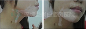 就这样,柳小姐去过多家医院治疗,虽然使用过多种内服、外用药,但依然无果。柳小姐也一度想放弃对白癜风的治疗,但在家人的鼓舞与支持下,柳小姐走进了深圳益尚门诊部。点击查看>>>>>>白癜风成功治疗案例