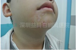 家住龙岗区的龚小朋友,在两年前,右下颌无症状出现一块小白点,因为不疼不痒,家里人没有在意,后来过了一段时间,脸上白斑扩散了,多了好几块,龚小朋友爸 爸妈妈才带他到医院检查,当被确诊为白癜风的时候,家里人当时就蒙了,都不敢相信。医生给龚小朋友开了一些药,但是并没有什么效果。龚小朋友爸爸妈妈带着龚小朋友跑了多家医院治疗,均没有治好,家人为了给他治病,花了不少钱。龚小朋友爸爸妈妈心急如焚,毕竟还是还小,长大后该怎么办?龚小朋友爸爸妈妈经常 为其苦恼。后来,一次偶然机会,龚小朋友的爸爸得知深圳市白癜风医学研究院治疗好了许多白癜风患者,龚小朋友爸爸妈妈急忙带他来到深圳益尚门诊部接受治疗。