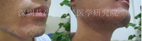 一个月后,徐航身上的隐性白斑已经完全消失。下巴上的顽固白斑也出现了明显的黑色素点。
