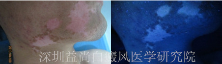 初诊时,患者下颌明显黑色素脱失,存在部分隐性白斑