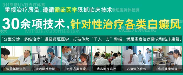 我院立足于全面检测、精准分型,采用"分型分诊,多维治疗"全新临床诊疗模式,全面评估理念,制定最佳治疗方案,彻底治疗白癜风,并做好愈合管理,提供健康指导,规范化的诊疗流程,旨在建立"检测—治疗—康复"标准化体系。 点击咨询专家,看看你应该用什么技术