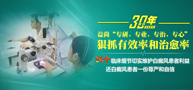 小事成就大事,细节成就完美。深圳益尚门诊部坚持以细节疗效为目标,经过多年的锐意进取,潜心发展,我院凭借多项国际同步的白癜风诊疗技术和国家专利、全国榜首的白癜风专家团队和会诊网络,以及全套先进超微创诊疗设备,治愈全国数万白癜风患者。